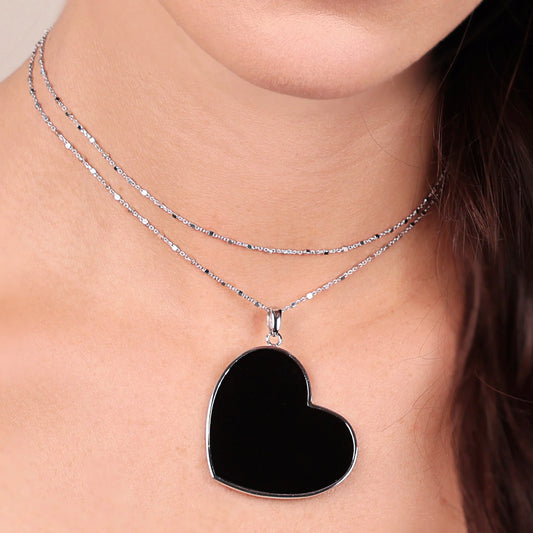 Collana Lunga in Argento 925 placcato Platino con Cuore in Pietra Naturale Sku: MTV493