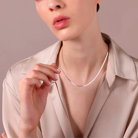 Collana Lunga in Maglia Snake Piatta in Argento 925 placcato Platino Sku: MTV426