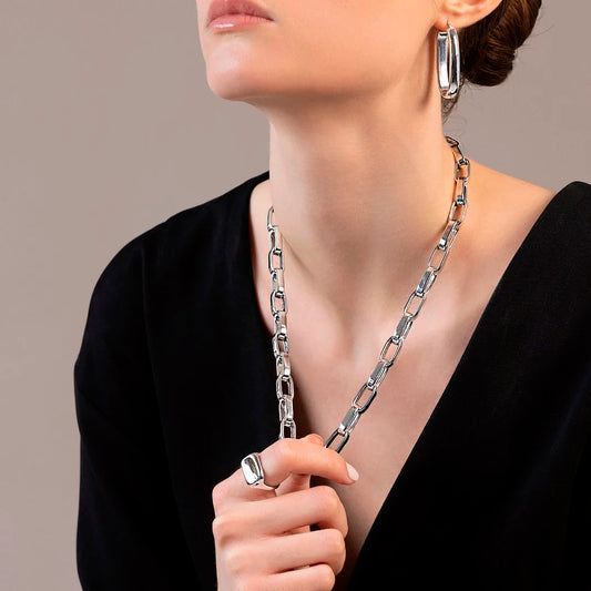 Collana Maxi Maglie Ovali Allungate in Argento 925 placcato Platino Sku: MTV442