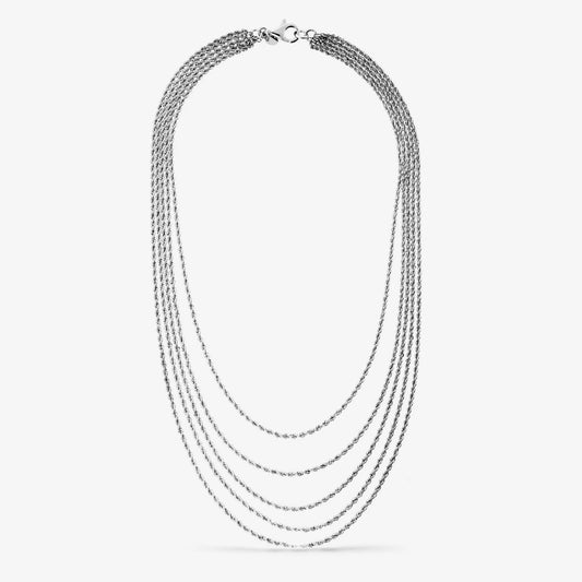 Collana Multifilo Graduata Maglia Corda in Argento 925 placcato Platino Sku: E3408NAG