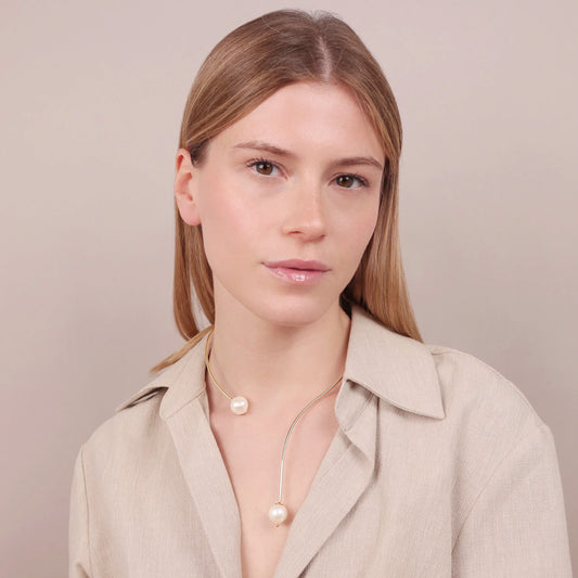 Collana Semirigida in Argento 925 placcato Oro Giallo 18Kt con Perle Ming Bianche d'Acqua Dolce Ø 13/14 mm Sku: M16679NAG