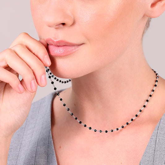 Collana Rosario con Spinello Nero in Argento 925 placcato Platino Sku: MTV430