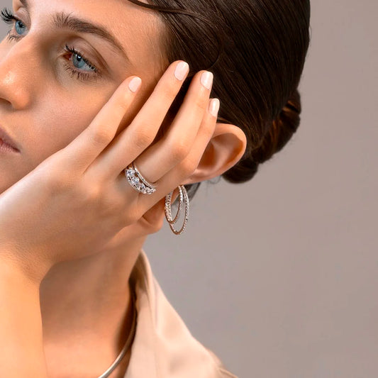 Orecchini a Cerchio in Argento 925 placcato Platino con Cubic Zirconia Sku: MTV728