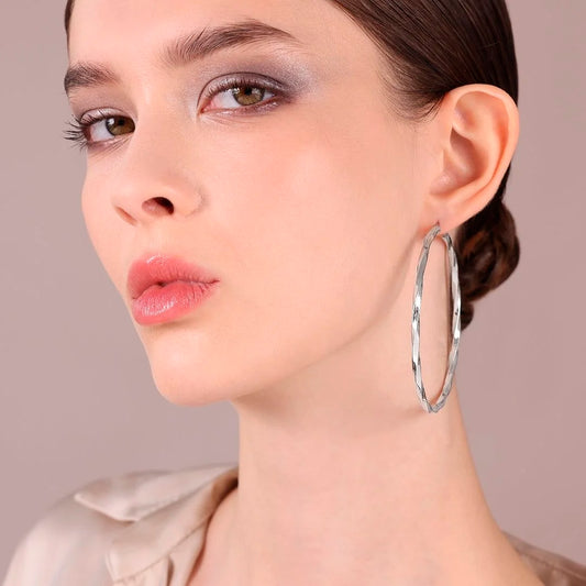Orecchini a Cerchio Ritorti in Argento 925 placcato Platino Sku: MTV496