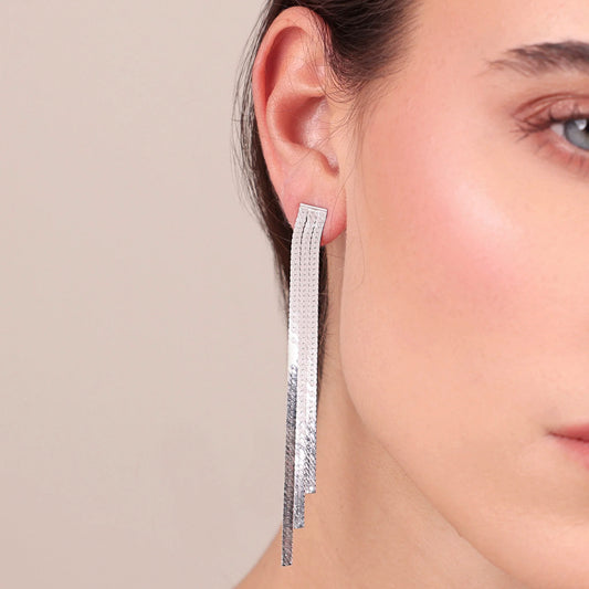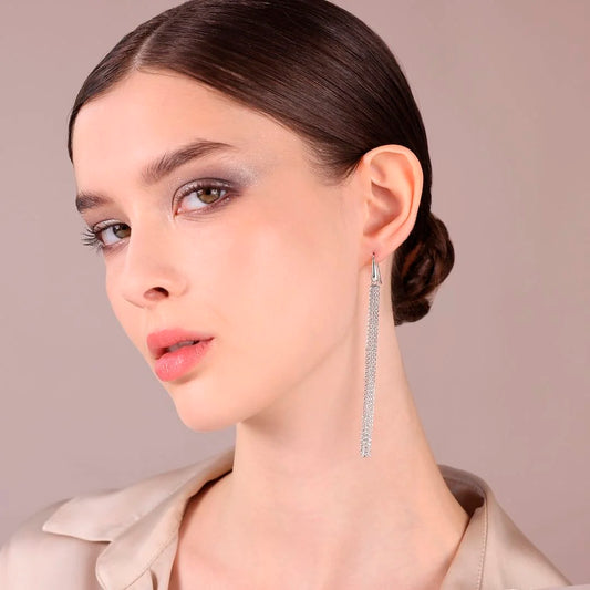 Orecchini Pendenti Multifilo in Maglia Brillantina in Argento 925 placcato Platino Sku: MTV418