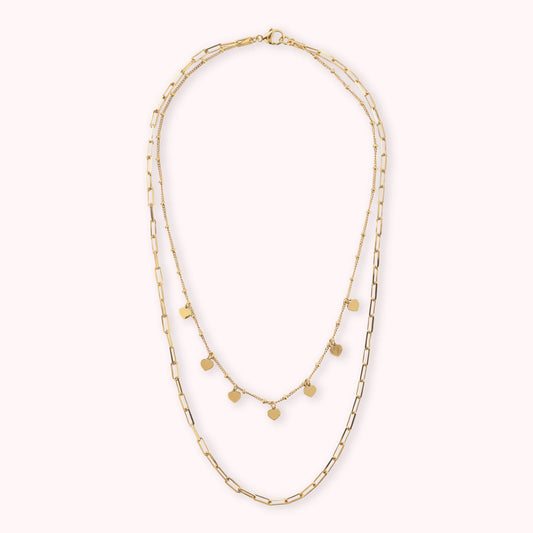 Collana Multifilo Golden Catena Forzatina e Rosario con Charms Cuore Sku: WSBZ01782Y