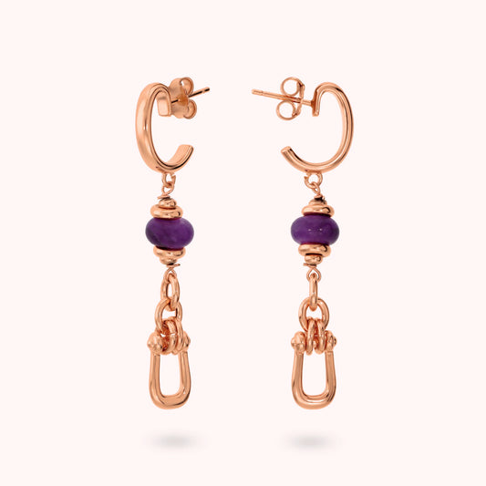 Orecchini Pendenti Staffa con Pietre Naturali di Quarzite Viola Sku: M17124EBR