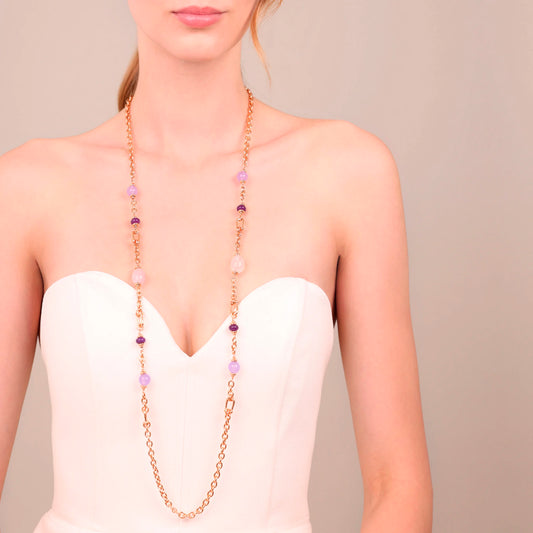 Collana Lunga Staffa con Pietre Naturali di Quarzite Viola Sku: M17126NBR