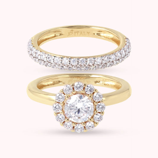 Set di Anelli Golden con Verette e Solitario Cubic Zirconia Sku: WSBZ01150Y