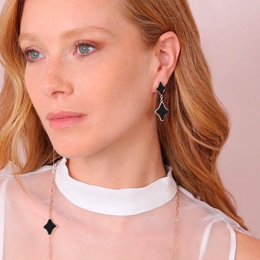 Disponibilità: 166Prix habituel €75.90 EURPrix habituelPrix promotionnel €75.90 EURRetail: €0.00 EURPrix unitaire / parOrecchini Pendenti Smaltati con Doppia Étoile e Pavé in Cubic Zirconia