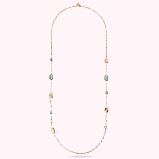 Collier long avec pépites rondes et baguettes et pierres précieuses prismatiques Sku: WSBZ02430