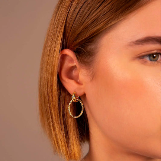 Boucles d'oreilles pendantes entrelacées en or 375 avec double chaîne Rolo Sku: WSGD90323