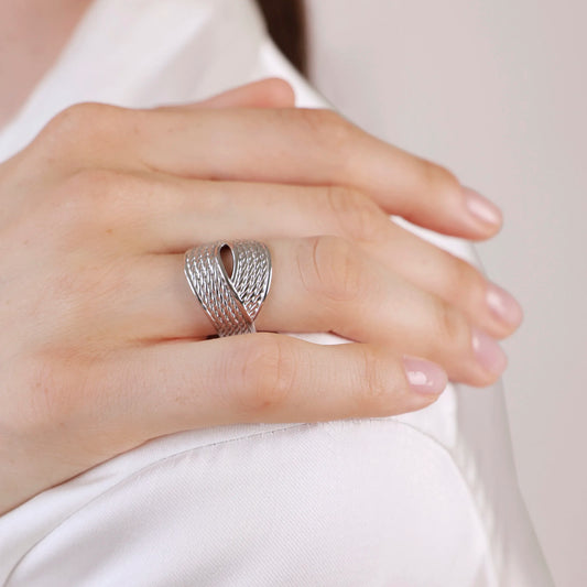 Anello Incrocio Design a Corda in Argento 925 placcato Platino Sku: M16969RAG