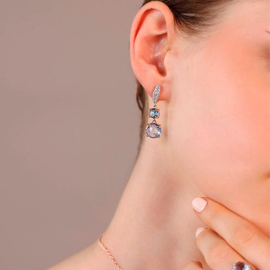 Prix habituel €129.00 EURPrix habituelPrix promotionnel €129.00 EURRetail: €0.00 EURPrix unitaire / parBoucles d'oreilles pendantes à prisme et pavé de pierres précieuses carrées