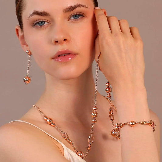 Collier long avec maillons ovales entrelacés et perles brillantes Sku: WSBZ02365