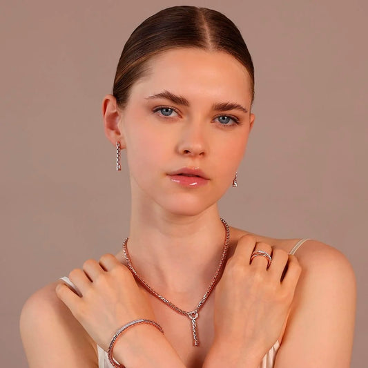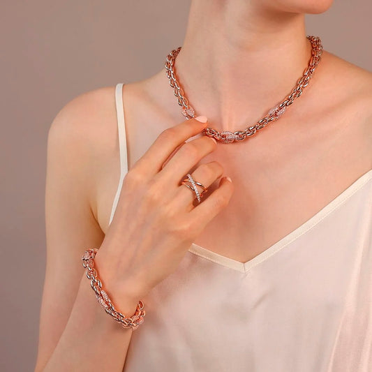 Collier ras du cou en maille géométrique avec éléments pavés en zircone cubique Sku: WSBZ02404