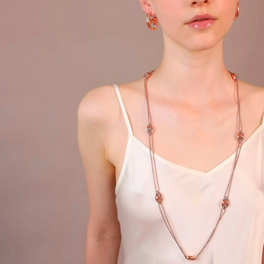 Collier long à double chaîne rolo avec maillons marins brillants Sku: WSBZ02402