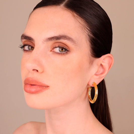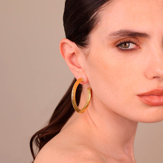 Orecchini a Cerchio Martellati Grandi Sezione Triangolare Sku: M16955EBR