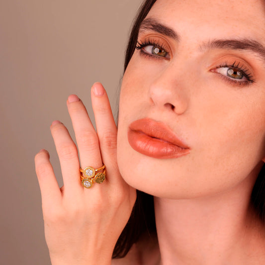 Set Tre Anelli Cocktail con Disco Martellato e in Pavé di Cubic Zirconia Sku: M17110RBR