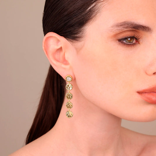 Orecchini Pendenti con Dischi Martellati e in Pavé di Cubic Zirconia Sku: M17111EBR