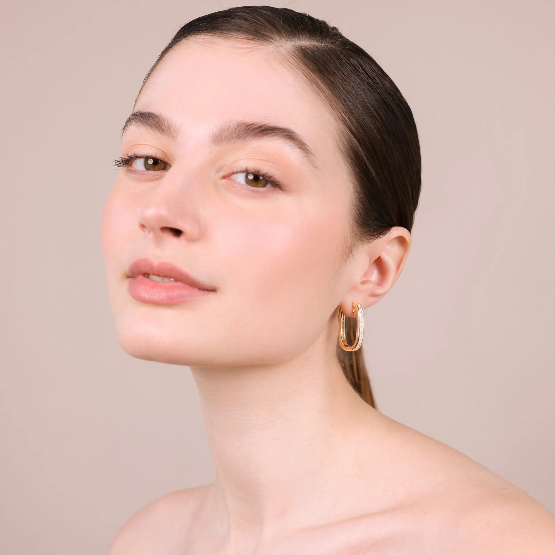 Orecchini ovali in Argento 925 con cubic zirconia (2.5x2.5 mm), qualità 'Luminosa', pari a 4ct. Dimensioni orecchino 28x18 mm. Chiusura con perno a incastro.